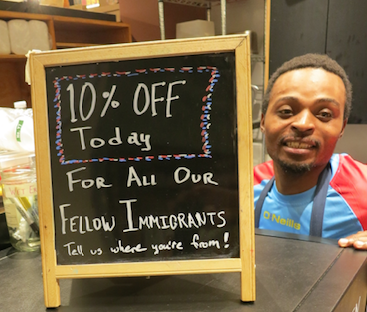DEAN STEVENS OF THE COMMUNITY CHURCH OF BOSTON HELD A SIGN WELCOMING IMMIGRANTS